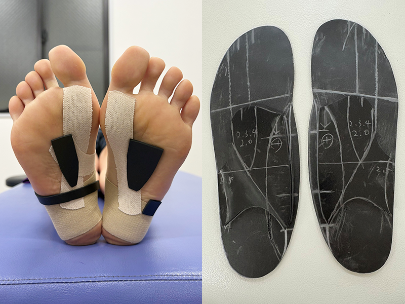 次にテーピングやパッドを使用して、患者様に合った歩き方と足の形状を評価します。